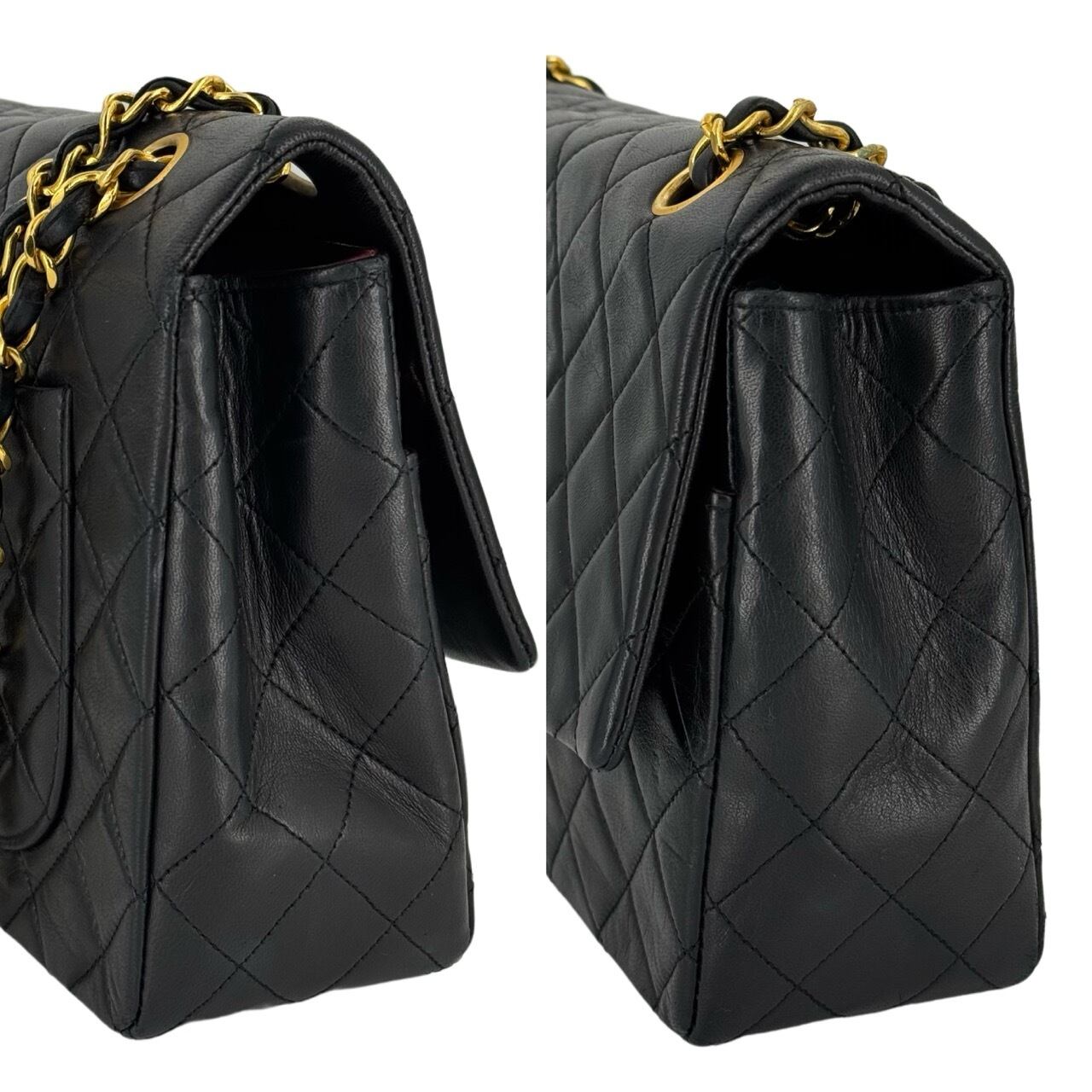 Chanel Matelasse Chain Shoulder Bag 27cm Lambskin Black with Pouch Gold Hardware 1 Series (1989?1991) Vintage Double Chain Single Flap for Women CHANEL シャネル マトラッセ チェーンショルダーバッグ 27cm ラムスキン ブラック ポーチ付き ゴールド金具 1番台(1989~1991) レディース ヴィンテージ 2WAY ダブルチェーン
