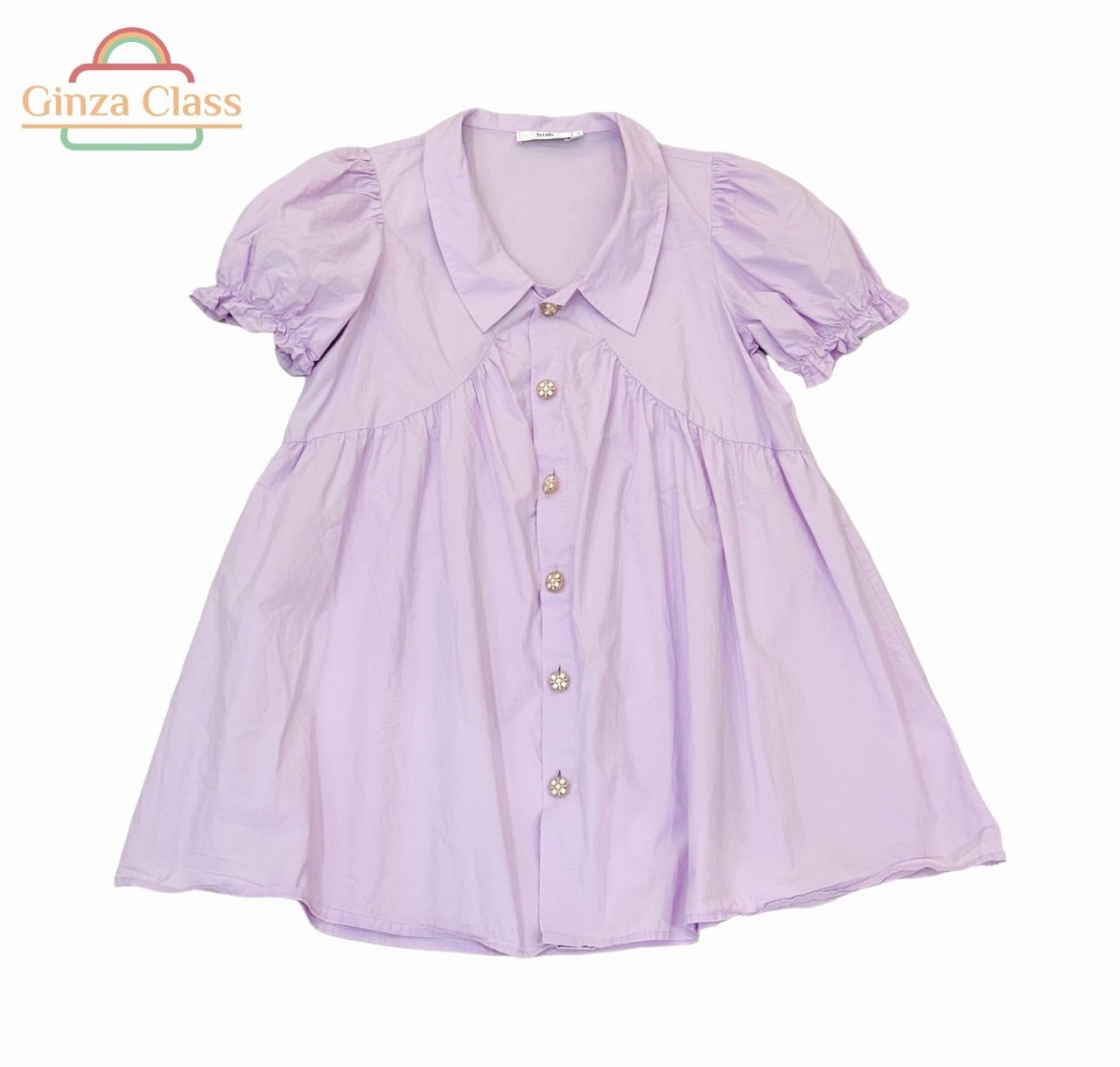 b+ab 襟付き パフスリーブ ワンピース SIZE S コットン100% ラベンダー CA41797 レディース パープル 中古
