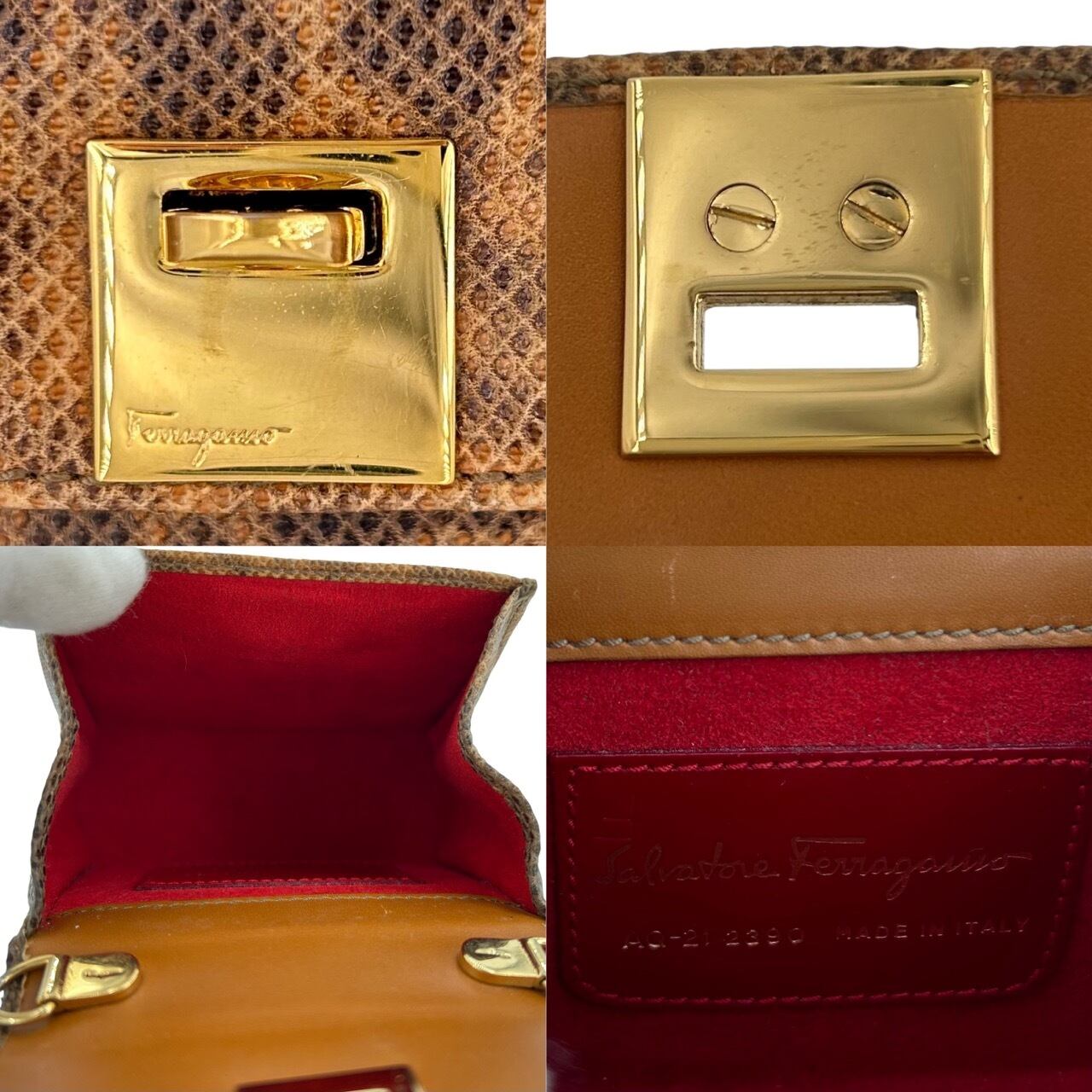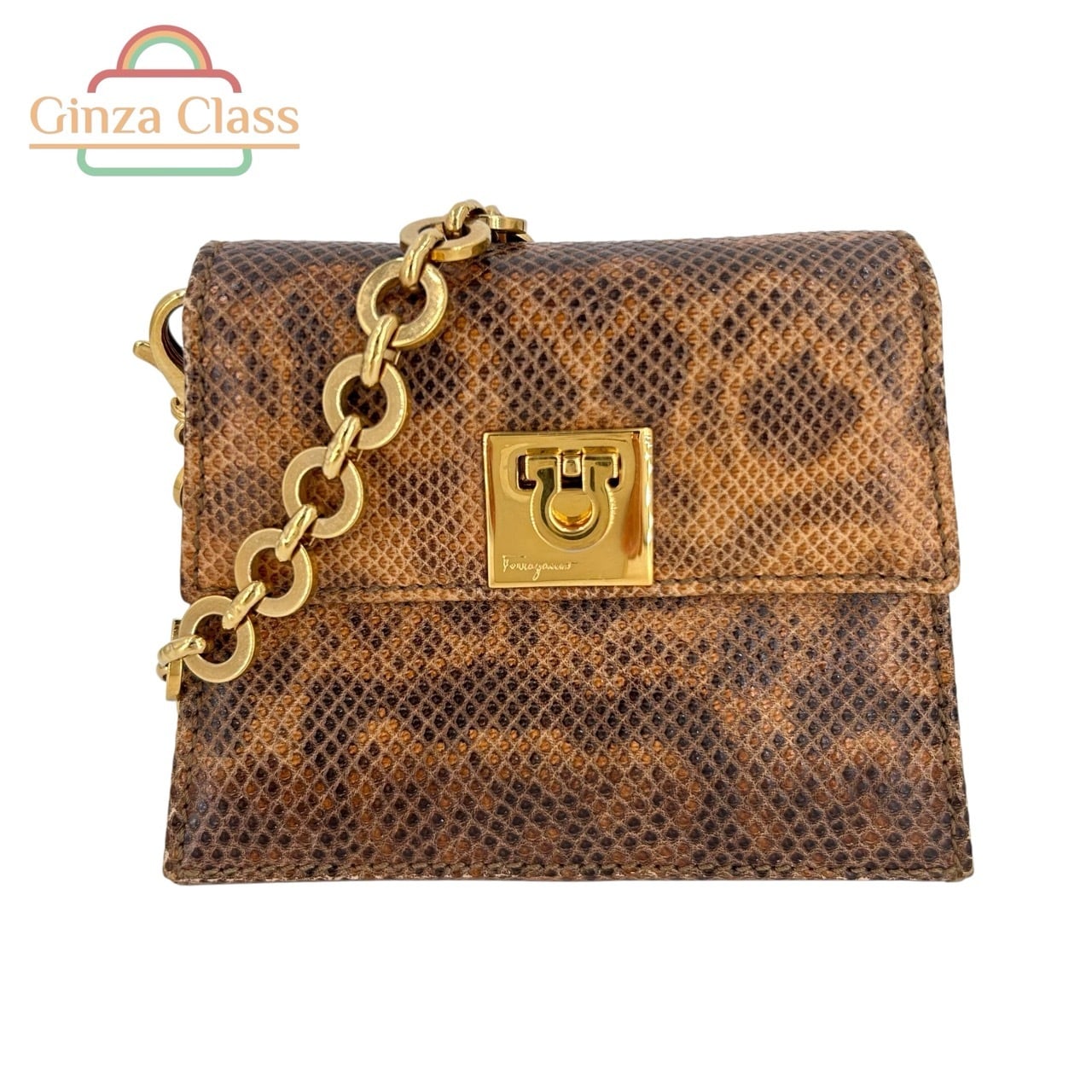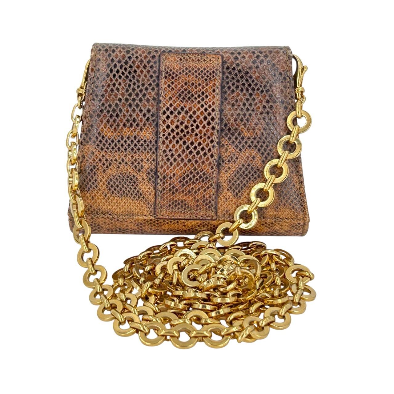 Salvatore Ferragamo サルヴァトーレ・フェラガモ ミニチェーンショルダーバッグ パイソン AQ-21 2390 ミニバッグ レディース 中古 ゴールド金具 ブラウン系