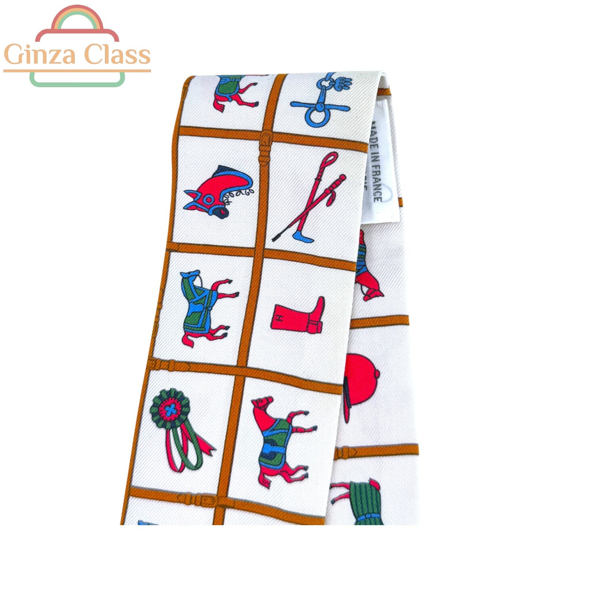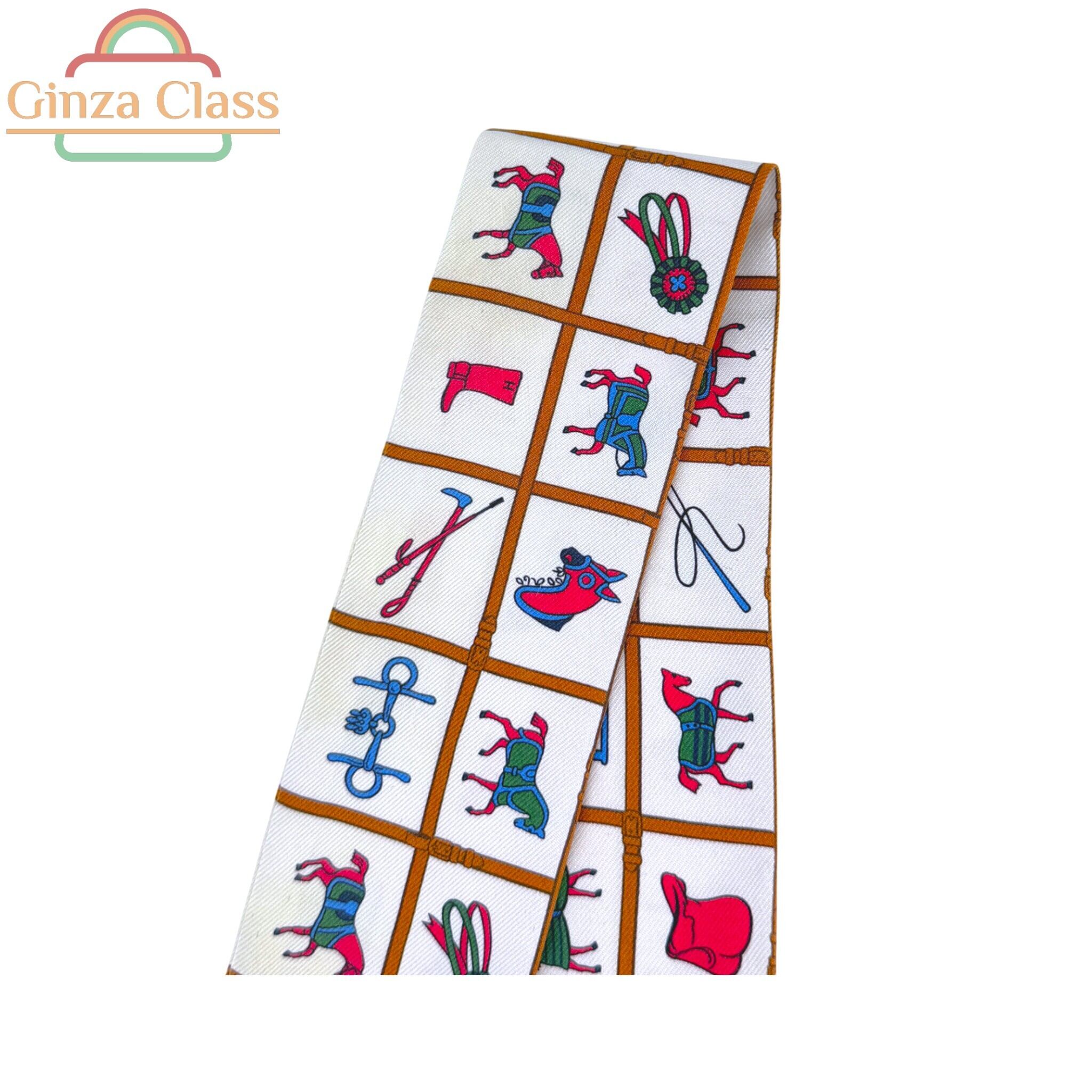 HERMES エルメス ツイリー 馬着 シルク100% ホワイト ブラウン ローズ マルチカラー スカーフ 送料無料