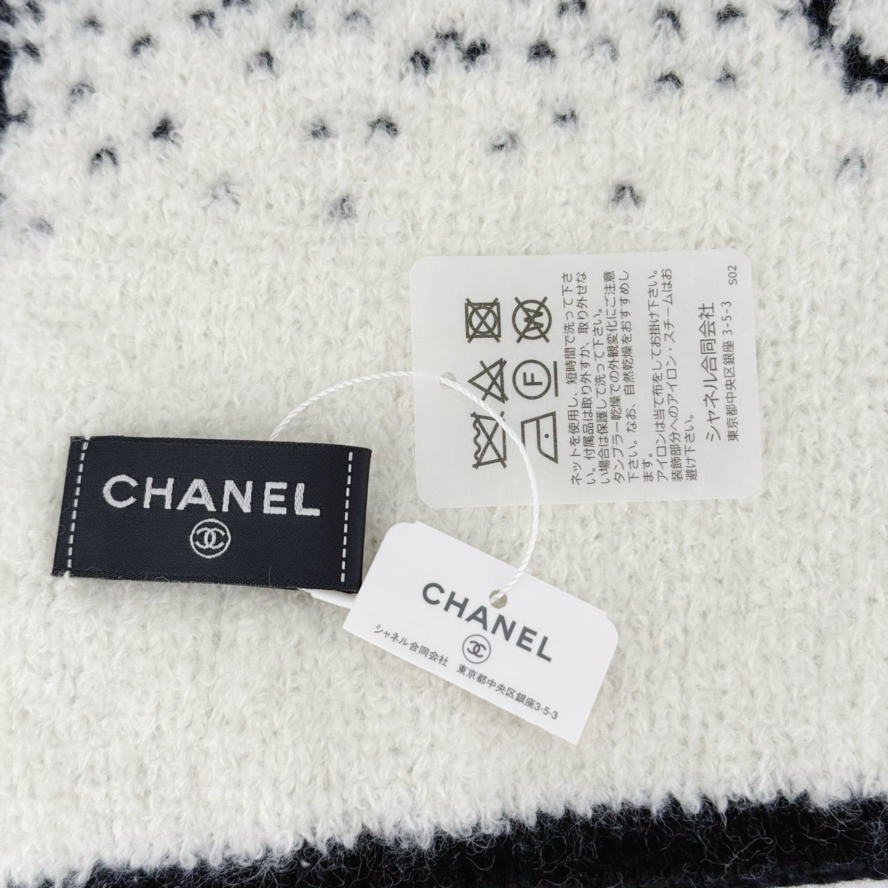シャネル CHANEL 2025/26 ココネージュ コレクション スカーフ ストール カシミヤ 羊毛 シルク ブラック ホワイト 黒 白 25K 新作 新品 未使用 ギフト
