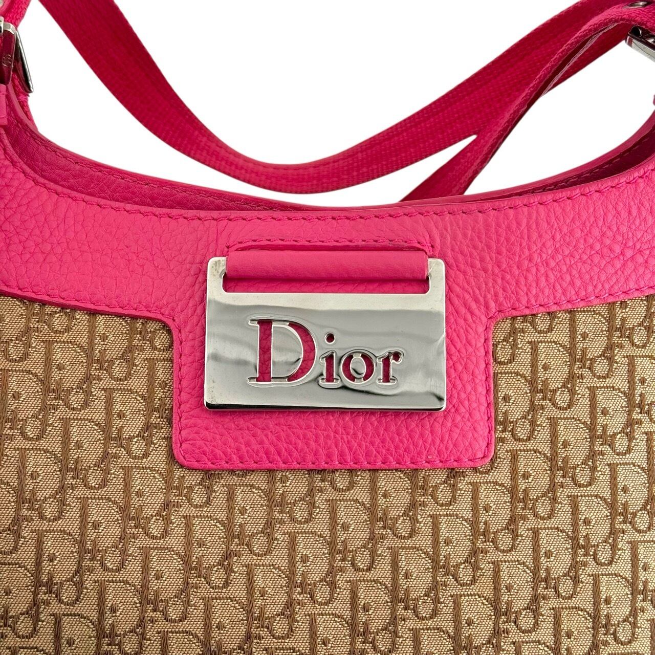 クリスチャン ディオール Christian Dior ショルダーバッグ トロッター キャンバス レザー ブラウン ピンク 57-BM-1005 ヴィンテージ 中古 レディース トートバッグ